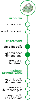 DESCRIÇÃO DAS MODIFICAÇÕES Ao nível da embalagem secundária ou de grupagem (pack 6) aplicou-se um filme de plástico retráctil e eliminou-se a tira de cartão. Em relação à embalagem terciária, esta alteração permitiu eliminar o tabuleiro de cartão e o filme plástico que anteriormente envolvia cada conjunto de 4 embalagens de grupagem. BALANÇO DAS REDUÇÕES